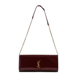 Saint Laurent Kate Red Calf Shoulder Bag. Made from dark red patent calf leather. Features gold-toned hardware, front Cassandre logo detail, concealed magnetic fastening, adjustable chain and leather shoulder strap, inner open pocket, 100% calf leather, made in Italy, dimensions W:28cm H:12cm D:4cm.