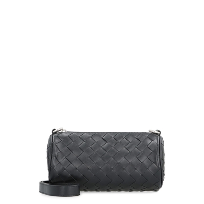 Bottega Veneta Barrel Leather Crossbody Bag, color Black/Silver, 100% Calf, designed for carrying essentials securely, a luxury crossbody option from Bottega Veneta.