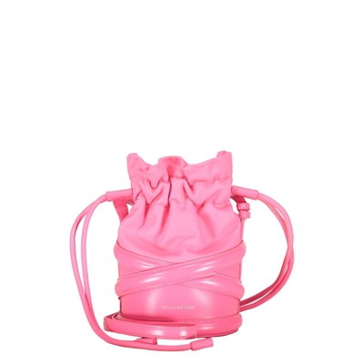 Alexander McQueen ladies pink shoulder bag. Color: Pink. Material: 100% calf leather. Finish: Glossy. Dimensions: Width 24 cm, Height 24 cm, Depth 15 cm. Strap Length: 110 cm. Closure: Drawstring. Strap: Adjustable. Suitable for: Casual look and special occasions. Contents: Wallet, mobile phone, makeup.