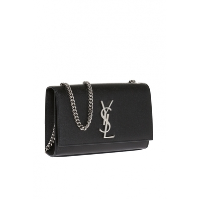 Saint Laurent grain leather Kate shoulder bag, monogram, black polished finish. Silver-tone chain shoulder strap, logo plaque, black lining, main internal compartment, slip pocket, magnetic snap fastening. Made in Italy.