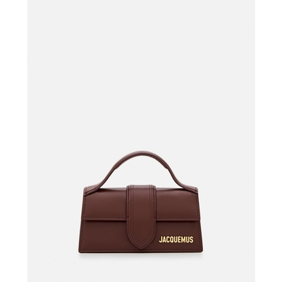Jacquemus Ladies Top Handle Bag. SKU: BAW00006BC01A01850. Color: Brown. Jacquemus Le Bambino Leather Top Handle Bag. Detachable, adjustable shoulder strap. Single leather top handle. Front flap with magnetic closure. Front metal logo detail. One back patch pocket. Cotton lining. Color: brown. Composition: 100% Col.