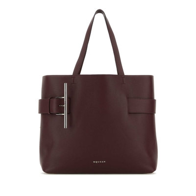 Alexander McQueen Ladies Shopping Bag. SKU: 8135321VDDM_6408. Color: Cranberrysilver. Alexander Mcqueen Tyrian Purple Leather T-Bar Shopping Bag. Tyrian Purple Leather T-bar Shopping Bag.