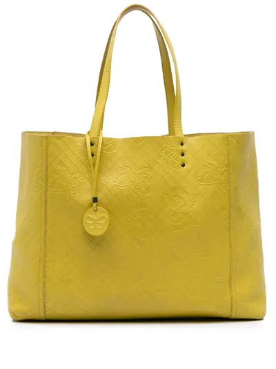 embossed leather body flat leather shoulder straps open top yellow Serial Number: B02714496X This item has no inclusions. Condition: GOOD. This previously owned and used item is in good condition with minimal signs of use. This may include fading of material or plating and scratches. Declared Damages: Handle/Strap Feature(s) Minor Splitting. Please refer to the photos on this product page for a detailed view of the item, including any damages declared.