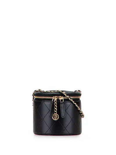 quilted lambskin leather body leather woven chain link shoulder strap zip-around closure with charm black Serial Number: 30328589 Inclusions: authenticity card. Condition: EXCELLENT. This previously owned item is in near-perfect condition with no signs of damage or use. Due to the exclusivity of this item and its limited availability, processing and delivery might take longer than usual. Please refer to the photos on this product page for a detailed view of the item, including any damages declared.