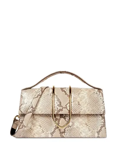 Бежевый топ-хэндл с эффектом змеиной кожи, съемный плечевой ремень, фурнитура золотистого цвета, клапан