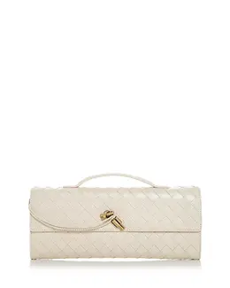 Кожаный клатч Andiamo intrecciato Bottega Veneta, белый 5007728 | sea salt/brass