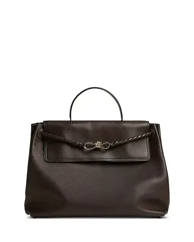 Большая кожаная сумка ciao ciao intrecciato с верхней ручкой Bottega Veneta, коричневый 5454609 | fondant/brass