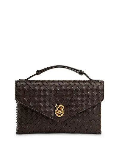 Сумка через плечо из кожи с замком-узлом и плетением «интреччиато». Bottega Veneta, коричневый 5454615 | fondant/gold