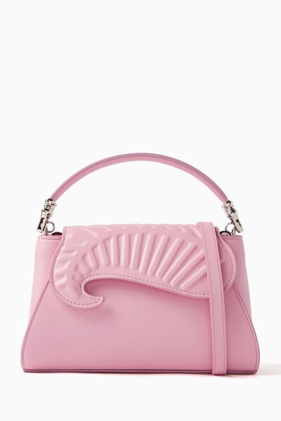 Capturing the essence of Arab Gardens in a compact form, the mini Yasmine Bag by Okhtein epitomises timeless elegance. The design reimagines the brand's distinctive palmette with a unique curved flap, making it as distinctive as collectible art. This exquisite piece is part of the co-designed capsule collection with Yasmine Sabri, perfectly balancing collaborative creativity and cultural resonance.