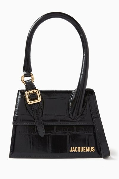 The Le Chiquito Moyen bag portrays French label Jacquemus's chic balance of timelessness and modernity. Expertly crafted from smooth leather, its refined silhouette is styled with a curved top handle and signature logo hardware in gold-tone metal.