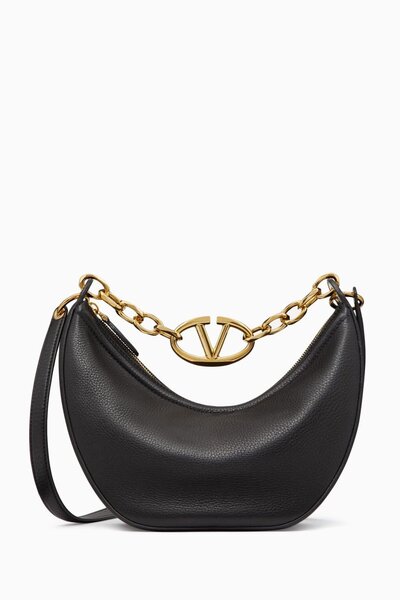 The Valentino Garavani Small Vlogo Moon Hobo Shoulder Bag is a dream for fashion mavens who adore a touch of the past. Crafted in leather with a distinctive moon shape, the hint of golden through the chain and metal VLogo are a declaration of a vintage-inspired, yet utterly contemporary style.