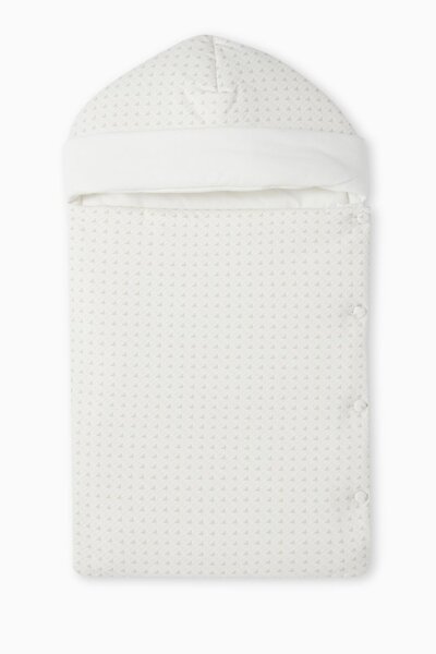Featuring signature Armani codes that won't go unnoticed, this sleeping bag is destined to become a favourite in your little one's wardrobe. • Crafted in cotton for premium comfort • Its relaxed silhouette and practical details are ideal for sleeptime • Use this for an effortless yet refined look