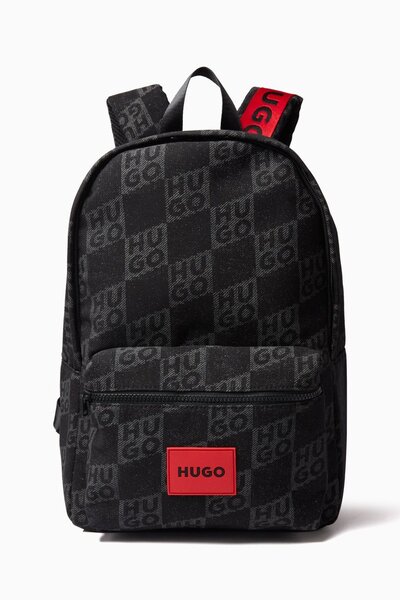 The Kids Hugo Backpack features an all-over monogram print, combining style with functionality. • It includes a front zip-fastening pocket, an all-around zip fastening, a single top handle, and two adjustable shoulder straps for comfortable carrying • The spacious main compartment offers plenty of room for all your child's essentials