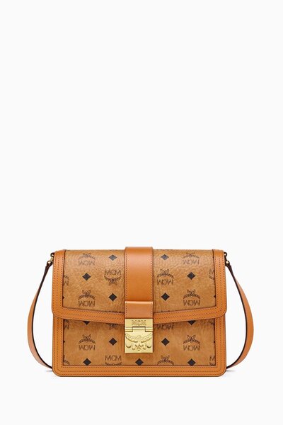 The Bavarian diamond, a renowned symbol of MCM's German origins, adorns this mini Visetos shoulder bag. Embracing the Bauhaus principle of "form follows function," the timeless motif influences the design of the calf leather front flap with a buckle closure, seamlessly merging aesthetics with practicality.