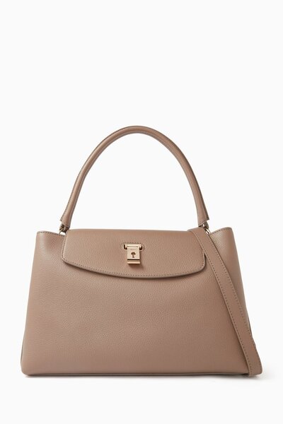 Brought to life in Bally's Swiss atelier, the Layka top-handle bag exudes refinement, paired with an elegant daytime look. Paying attention to the fine finishes, the design has a gold-tone Lock Me closure and braided, detachable strap, both adding a tactile touch to the compartmentalised, grained calfskin body.