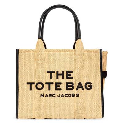 Marc Jacobs Ladies Tote. SKU: 2S4HTT056H03255. Color: Natural. Size: 17in L x 6in D x 13in H. Marc Jacobs The Large Woven Tote Bag - Natural. The Large Tote features a woven texture with leather trims, a chunky top zip closure, and embroidered branding, and includes multiple inside pockets; one zip pocket, two slip pockets, and one card slot; along with a twill lining, and can be carried by the top handles or worn over the shoulder for convenience. Handle Drop 9in. 100% Calf Leather, 60% Polypropylene, 40% Cotton, Lining: 100% Cotton.