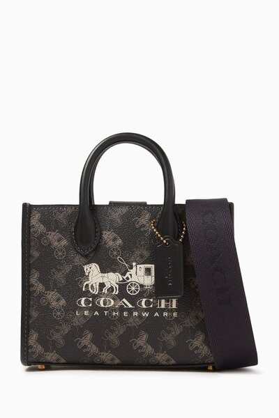 Modern sensibility meets Coach's sought-after house codes in the petite Ace tote. Made from carriage-print coated canvas and trimmed with contrast-stitched calfskin, this exquisitely structured bag is just what effortlessly elegant looks call for.