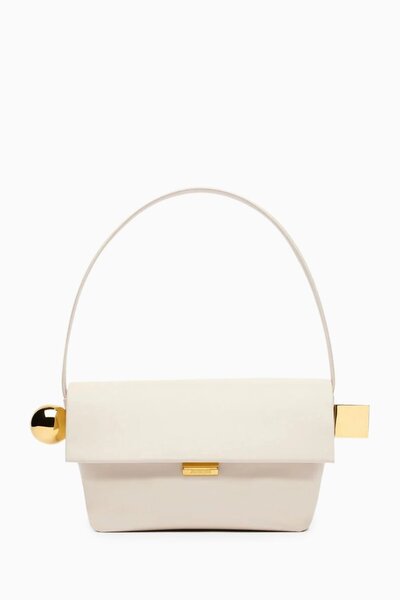 Through contemporary details that intrigue and elevate, Jacquemus' Le Rond Carre bag will bring Parisian chicness to any look. Gold-plated, the bag's geometric hardware lends a structured frame to the soft, folded nappa lambskin. For a sleek finish, the design is suspended from a slim, curved shoulder top-handle.