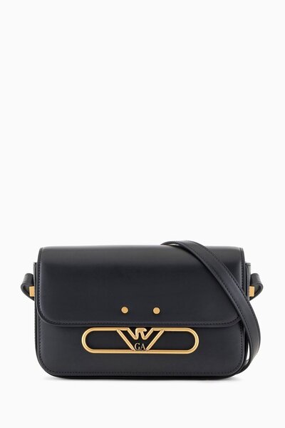 Emporio Armani's understated elegance claims centrestage in this petite crossbody bag. Smooth calfskin provides a minimal canvas for the gold-tone eagle logo plaque, a coveted house code that brings a touch of glamour to this curved, classic bag.