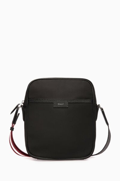 From smooth to grained to webbed, the contrast textures of the Code crossbody bag are minimal enough to complement any look, yet unique enough to render the design an eye-catching style. • Leather trims outline the bag's curved silhouette • The signature Bally ribbon serves as an adjustable shoulder strap, allowing for crossbody carry • Its nylon exterior is lined in a matching, lightweight fabric