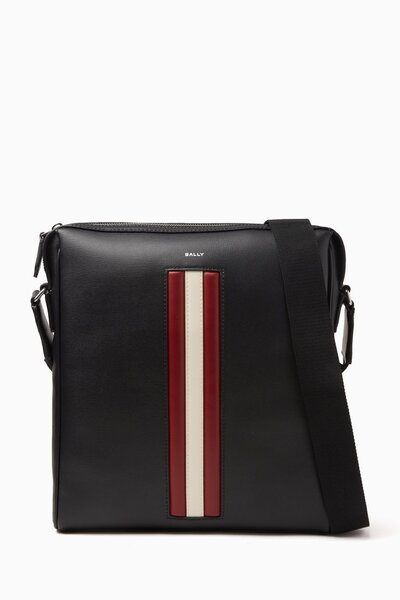 Minimal to remain a staple season after season, Bally's Mythos crossbody bag charms with exquisite craftsmanship over loud details. • The design's smooth leather is contrasted by a webbed Bally ribbon • Adjustable, the bag's shoulder strap provides versatile styling options • Sealed by a zip closure to keep belongings secure