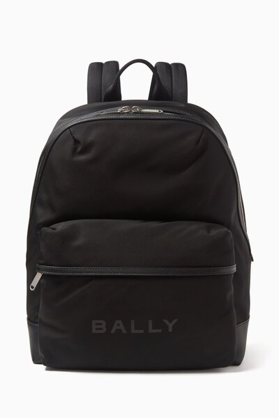 Tailored to keep up with busy schedules, the Bally Treck backpack is roomy, enduring and effortlessly easy to style. • A leather base and trim contrast the design's smooth nylon exterior • Padded and adjustable, the shoulder straps ensure cushioned comfort • The two-way, palladium-tone zip closure unveils a neatly organised interior with a laptop holder and multiple pockets