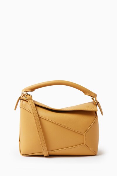 This LOEWE bag is a standout addition to your closet rotation. Crafted in Spain from calfskin leather, it showcases a striking puzzle-like design and is perfectly sized to hold your strict essentials. Use the adjustable shoulder strap to sling it across your body for hands-free wear.