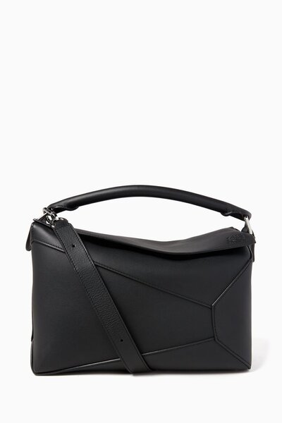Hailed as Creative Director Jonathan Anderson's debut bag for Loewe, the Puzzle bag showcases a distinctive cuboid shape and striking geometric lines, highlighting meticulous craftsmanship. Crafted from classic calfskin with overlapped edges, this medium-sized bag comfortably accommodates your essentials, from a large wallet to an A5 notebook. Versatile for shoulder, crossbody, or hand carry, it pairs beautifully with tailored pieces, while elevating more casual ensembles.