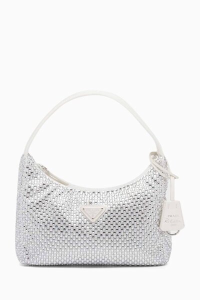 The Re-Edition 2000 mini bag is an opulent update of an archival Prada style. All-over crystals give the silhouette a decadent sparkle, while the signature triangle logo and signal its designer status.