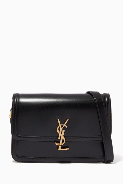 The clean lines and luxurious craftsmanship of Saint Laurent's Solferino Satchel imbue it with a classic appeal. Crafted from smooth calfskin leather, it sports the gold-tone YSL monogram which has become an iconic house code. Dangle the strap over your shoulder to add a refined finish to your outfits.