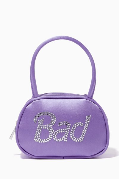 The statement-making Super Amini bag by Amina Muaddi will bring a fresh touch of style to your edits. Crafted in Italy, it has a lustrous silhouette and is embellished with sparkling crystal "Bad" lettering for a look that radiates playful glamour.