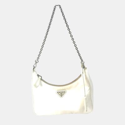 Prada Triangle Logo Triangle Logo Plate Chain With Crossbody Pouch Shoulder Bag White Beige 1091981