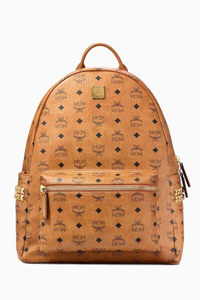 Punctuated by 24kt gold-plated studs, the latest version of MCM's Stark backpack is every bit as bold as one would expect from the iconic label. Laurel logos and diamond motifs blend across the design's curved canvas body, which is finished with an array of practical and stylish details - note the adjustable shoulder straps, nappa trims and the suede-like lining.