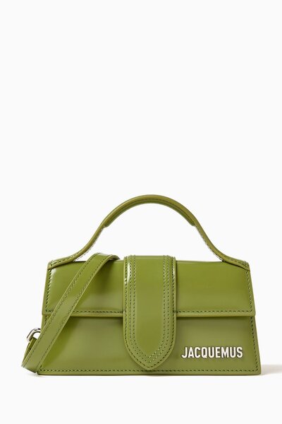 Tap into the mini bag trend with the Jacquemus Le Bambino bag. Designed in sleek, shiny calf leather, the bag is scaled to fit all your needs for a night out. The signature logo in silver-tone lettering adds a touch of glamour to the design. With detachable leather straps, you can carry it by hand or go hands-free.