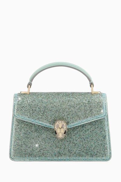 With luxe finishing touches rooted in BVLGARI's jewellery heritage, the Serpenti Forever bag is nothing short of a work of art. Its structured silhouette is made from suede, shimmering with hand-applied crystals in various shapes and cuts. The snake body-shaped chain strap offers hands-free convenience while paying homage to the Serpenti jewels of the '60s.