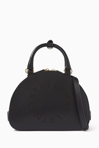Embodying day-to-day practicality, Stella McCartney's tote bag boasts wear-anywhere versatility, plenty of room and a strong dedication to sustainability. Crafted from vegan leather inspired by smooth nappa, the bowling bag features a minimal, relaxed silhouette, perforated with the British label's classic Pop logo lettering and accented with twin top handles.