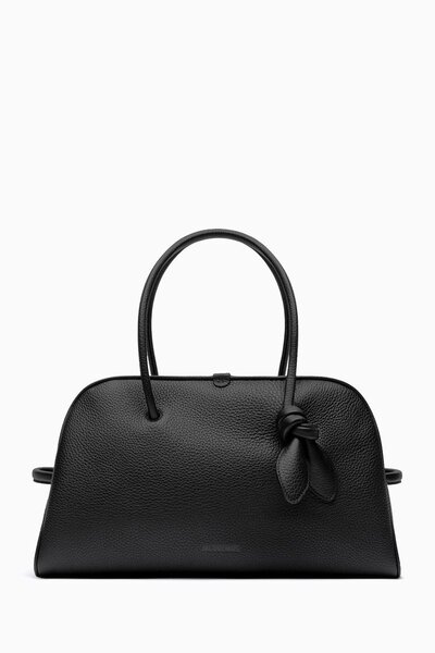 A minimal staple for travelling, Jacquemus' Le Grand Turismo top-handle bag is roomy, versatile and effortlessly cool. • Its curved bowling silhouette was crafted in Italy from enduring, grained calfskin • Slim side handles accompany the knotted, bow-like top handles • The two-way zip closure unveils a practical, compartmentalised interior featuring a zip and patch pocket
