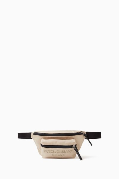 Dolce&Gabbana's belt bag provides more than just convenient, easy-access storage for your little ones' essentials. • A rubberised logo accent adds rich tactility to the lightweight nylon body • A front patch pocket sits below the zip closure • The adjustable, tape belt strap is sealed by a tonal buckle