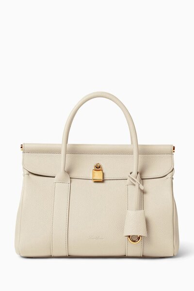 With a sculpted bar underneath its front flap, the Loom bag evokes the iconic weaving technique it's named after. Sealed by a radiant, gold-tone padlock closure, this fine-grained calfskin tote has a petite, sculpted body that can be carried handheld, over the shoulder or crossbody thanks to its twin handles and adjustable strap.