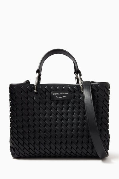 Emporio Armani Small MyEA Shopper Bag in Interwoven Leather 217721376_2709