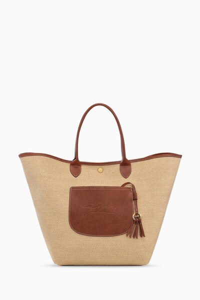 Embodying both rustic elegance and playful creativity, this basket bag features a trompe-l'œil exterior pocket inspired by a gardener's apron for a practical yet stylish touch. The bi-material design, with its combination of cowhide leather and smooth canvas with a straw effect, adds texture and durability. Finished with a contrasting vegetable-tanned leather label embossed with the Longchamp logo, this bag brings a fresh perspective to the classic PLIAGE style—perfect for those who embrace a dynamic, evolving lifestyle.