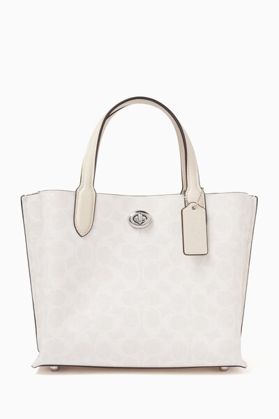 Coach's Willow tote is perfectly sized for your day-to-day essentials, making it as practical as it is elegant. Crafted from the house's signature coated canvas and refined leather, it features two open pockets, a secure centre zip compartment and iconic turnlock closure. Carry yours by the top handles or wear it on the shoulder using the detachable strap.