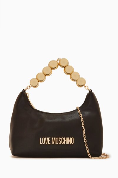 Although mini in size, this Love Moschino bag is a true maximalist when it comes to the details. Note its logo applique, ball-chain handle and detachable chain strap, all sparkling in gold against the curved faux leather body.