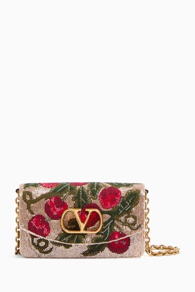 Experience the artisanal charm of Valentino’s Cherryfic embroidered bag, adorned with intricate hand-stitched details. Its antique brass VLogo Signature adds timeless elegance. Effortlessly versatile, it's your statement piece from day to evening.