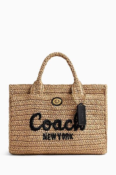 Coach welcomes the sunny season with sleek straw staples such as the logo-embroidered Cargo 26 tote bag. Suspended from twin handles and a detachable shoulder strap, the design offers an array of styling options, alongside the practicality of its multiple external pockets and sturdy straw weave.