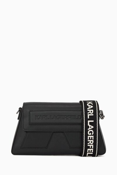 Crafted from smooth leather, this crossbody bag is defined by its embossed K-shape and tonal Karl Lagerfeld logo. A sleek magnetic flap ensures effortless access, while the adjustable branded strap offers versatile styling. Designed for modern wear, it’s a refined statement piece with everyday appeal.