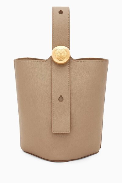 Travel light and in style with the LOEWE Mini Pebble Bucket Bag. Crafted in Spain from calfskin leather, it features an inner pocket and a magnetic closure to secure your valuables. It can be carried in hand or slung across the body for days on the go.