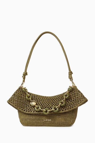 LOEWE elevates the classic raffia tote into a year-round essential with this chic, versatile bag. Crafted with leather trims and gold-tone hardware, it combines fashion-forward design with practicality, offering ample space for your essentials. The detachable shoulder strap and chain-link handle provide multiple carrying options, making it the perfect companion for spontaneous outings or everyday use.