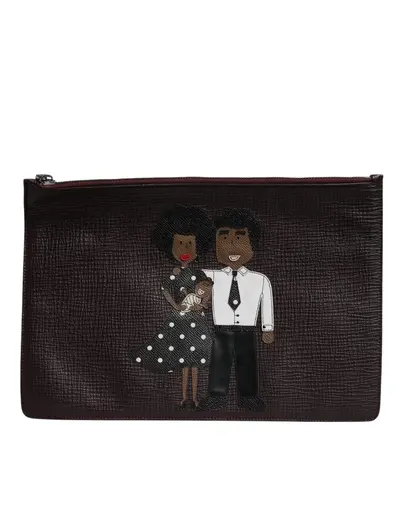 Absolutely stunning, 100% Authentic, brand new with tags Dolce & Gabbana pebbled leather pouch in brown. Signature multicolor graphic leather appliques featuring, Zip closure.