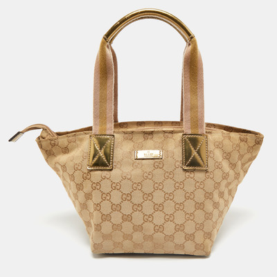 Gucci Beige/Gold GG Canvas and Patent Leather Small Web Tote 1162241
